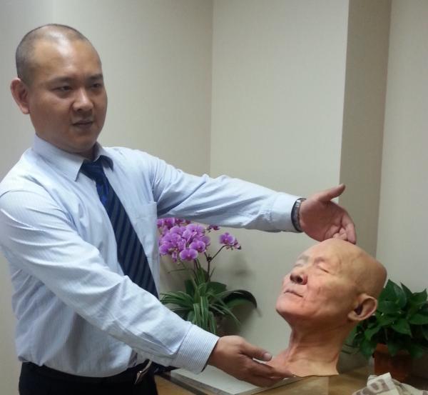 王刚捧着3D打印完成的老人头部模型。81岁的黄老伯在一场严重的车祸中去世。让家属在悲痛中略感欣慰的是,借助上海殡葬行业刚刚具备的3D遗体修复功能,黄老伯的面部遗容得以逼真复原。这是国内首例完成的3D打印遗体修复。