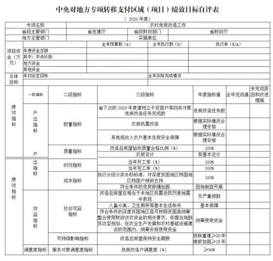 (二)按照时间要求完成验收内容、报送验收成果。3月15日前,各设区市汇总经审核的所辖县(市、区)《中央对地方专项转移支付区域(项目)绩效目标自评表》,形成市级《中央对地方专项转移支付区域(项目)绩效目标自评表》,报送省农房办。3月30日前,县级完成自查,形成自查报告,连同问题清单报送所在设区市;4月10日前,设区市完成抽查,汇总所辖县(市、区)验收情况、问题清单,形成验收报告,连同县级自查验收情况报送省农房办。省农房办根据各地上报的自查、抽查情况及信息系统数据进行核验。