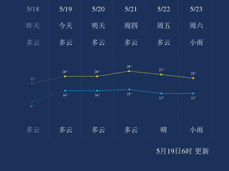 中国天气网讯 今天是5月19日星期二,一起来看天气。