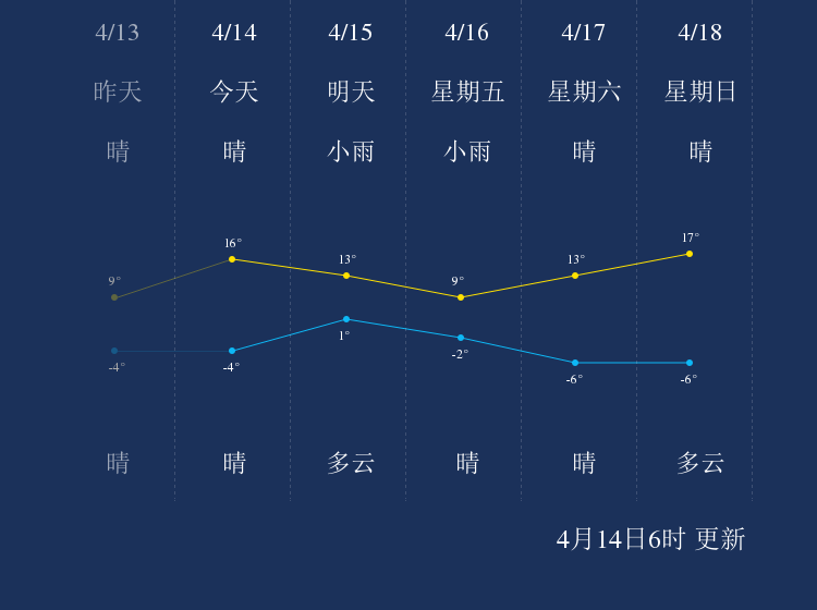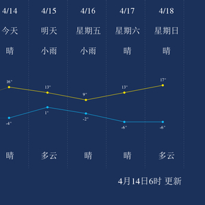 中国天气网讯 今天是4月14日星期三,一起来看天气。