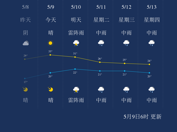 中国天气网讯 今天是5月9日星期日,一起来看天气。