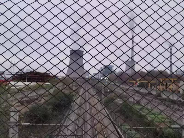 从红钢城通往白玉山街道的21号公路两旁布满了武钢的烟囱