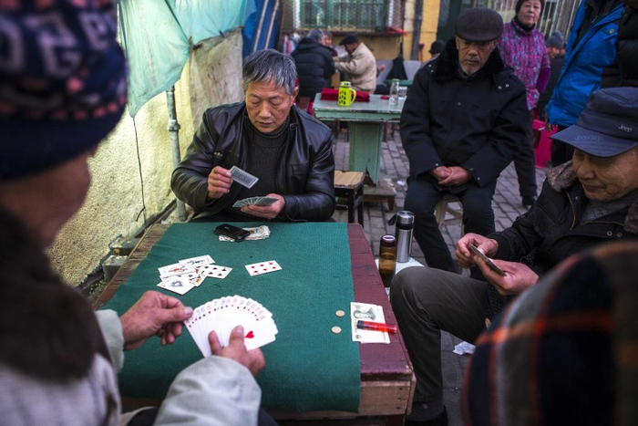 即使在夜晚进入白玉山,也能毫不费力地发现这里的破败:整条街区几乎没有路灯,老人们摸黑在街心花园里跳广场舞、孩子们摸黑打闹,为数不多的几个光源,来自零星散布的露天KTV,花费2.5元放嗓一歌是这里的中老年男女们奢侈的娱乐。