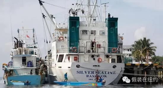 十几天后,其中一艘名为“Silver Sea Line”的船到了一个泰国港口,于是记者们也跟到了这个港口。他们找了一辆卡车,在码头上停了四天,观察着这批鱼的去向。为什么要躲在卡车里?因为码头上有渔业公司雇佣的黑手党拿着枪巡逻。