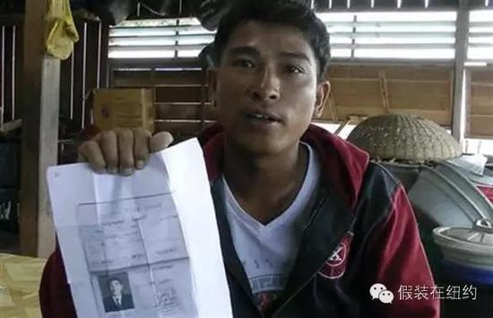 因为泰国政府禁止没有身份的非法劳工,所以渔老板们给这些缅甸人办了泰国的假身份,身份纸上除了照片,名字和其他信息都和他们自己完全没有关系。这个缅甸渔工对记者说,“除了照片都不是我的。”