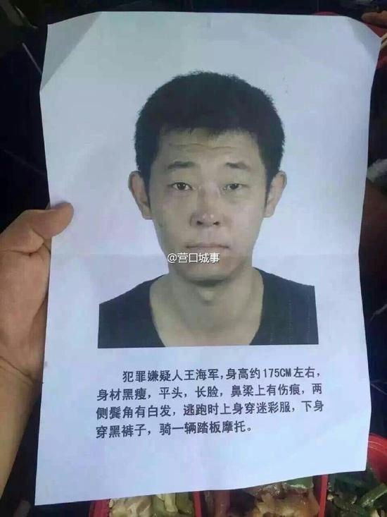 王海军,东四街道红旗村人有重大作案嫌疑,目前在逃。警方发布悬赏通报。