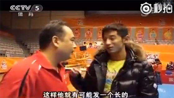 方博和业余选手打球 张继科方言支招