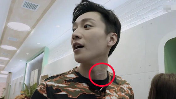 乔任梁录节目时胳膊颈部有明显疤痕