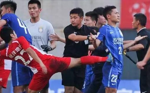 实拍:业余队赛后疯狂围殴苏宁球员