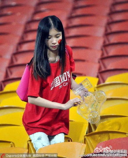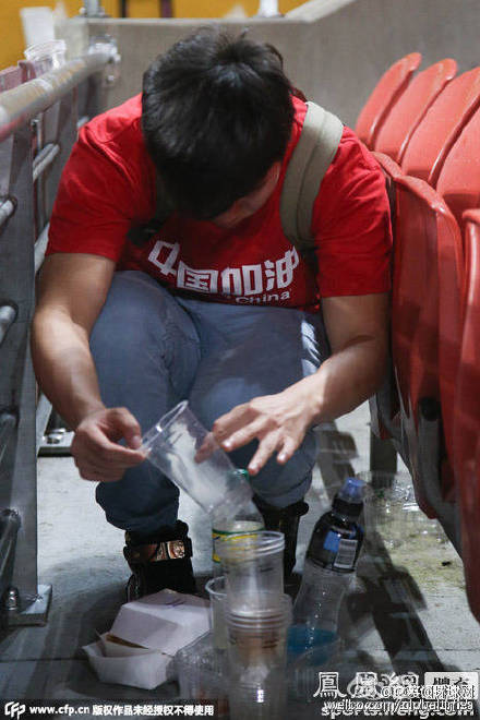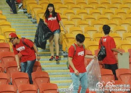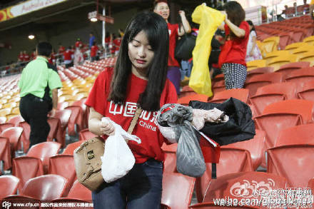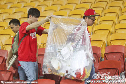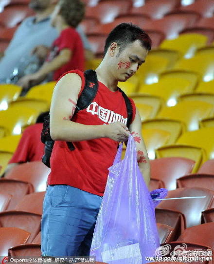 9张中国球迷清理看台垃圾
