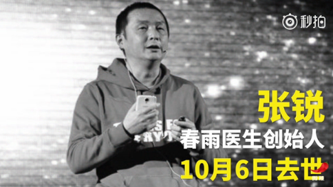 又有一位创业者离世。10月6日,经多方确认,春雨医生创始人张锐于今日凌晨3时突发心肌梗塞去世。