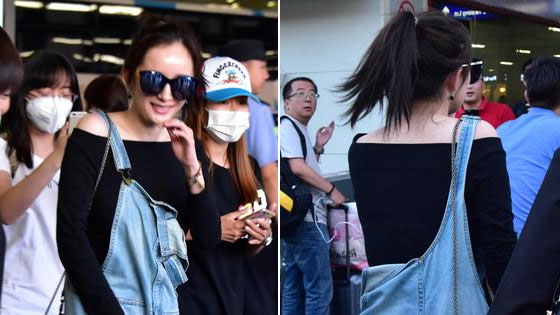 衣服不好好穿!杨幂素颜现身背带滑落露美肌