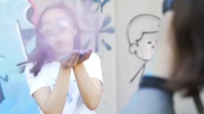 正面对镜头,基本就是对着镜头傻笑,要么微笑要么大笑,长得好的你随意!