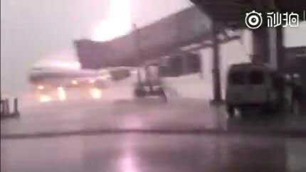 罕见实拍:广东揭阳机场客机被雷击中