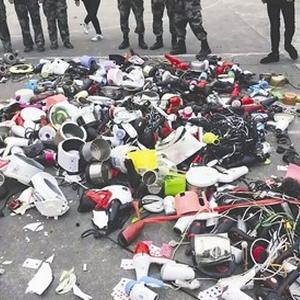 6张学校集中摧毁没收的违规电器