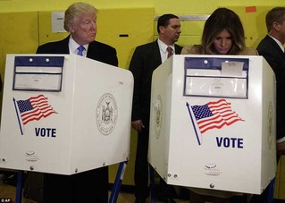 美国总统大选投票日,共和党总统候选人特朗普同妻子梅拉尼娅( Melania )一起前往投票站投票。特朗普对选情依然表现自信,并称这次参选是个“奇妙的过程”(amazing process)。