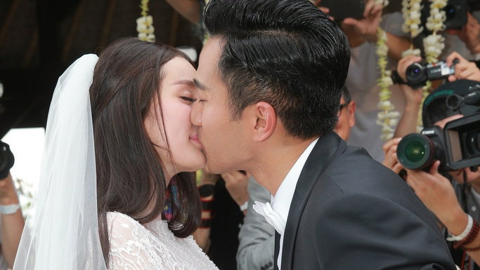 婚礼现场回顾:杨幂刘恺威在碧海蓝天中拥抱