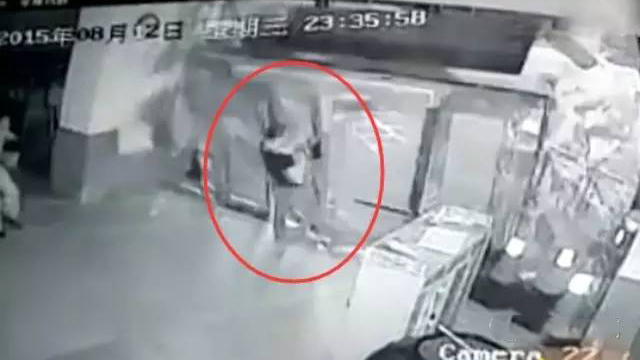 天津爆炸威力有多大:气浪瞬间掀翻玻璃门