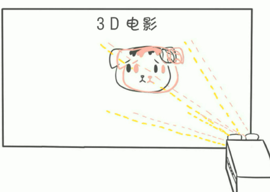 但3D电影,相当于一左一右,两台放映机,分别将两组画面,