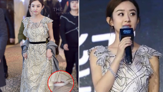 赵丽颖穿礼服出席活动 脚下穿的竟是拖鞋