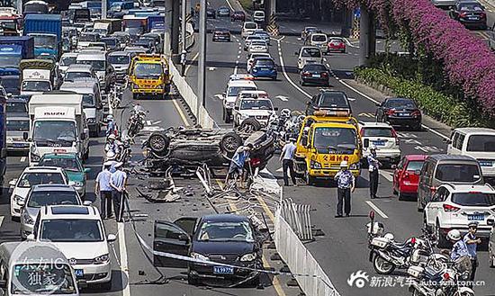 继沈阳兰博基尼撞车 传上海法拉利飙车车毁人伤