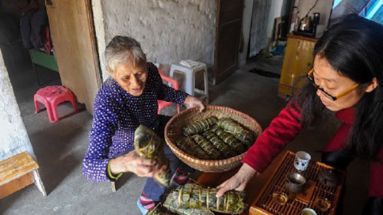 在鸡婆婆家中,最令记者好奇的,就是十几个长长的粽子。这些粽子外形和广佛地区的粽子差别很大,是长条形的,每条大概30厘米长,重量超过1公斤。“这是越南粽子,是我妈妈教我的”,鸡美英说。 这粽子是婆婆专门买越南米做的,一斤就要4、5元。记者也有幸尝到了婆婆的手艺,煎后的粽子外层很爽脆,跟煲仔饭的锅巴有几分相似。里面的馅料则跟广佛的粽子差不多,但米确实香很多,口感也很软糯。