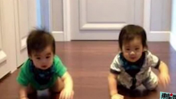 林志颖双胞胎儿子爬地讨抱抱 呆萌可爱