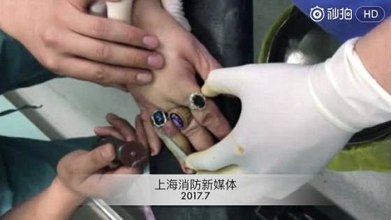 据悉,该老人之前已经到虹口消防中队取过三次戒指,消防战士每次给她安全取出后,过些天,又把戒指戴上了,周而复始,本以为这次消防员还能像往常一样轻松取下,却不知事情的危险程度远远超过自己的想象。