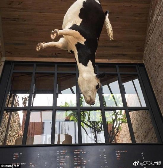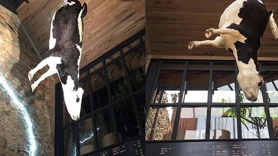 国外餐厅悬挂奶牛尸体惹争议 网友:请敬畏生灵