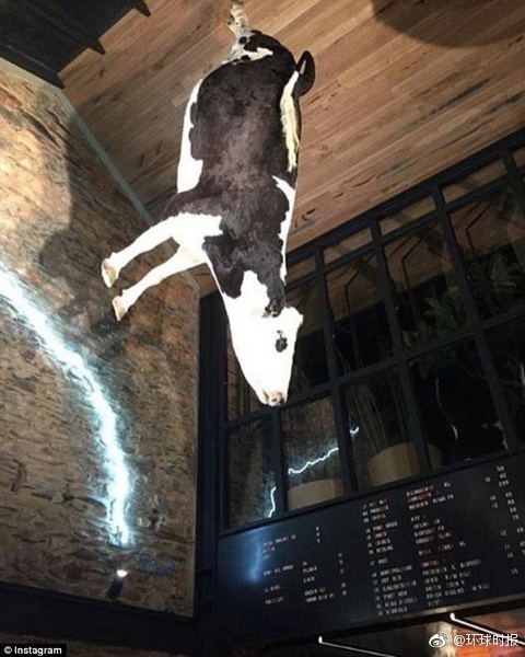 该餐厅表示,悬挂奶牛标本并不是为了“装饰”,而是与餐厅的装修风格目的一致,意图展示这个行业。