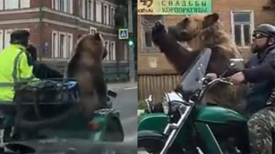 大棕熊坐摩托 表现淡定不愧为战斗民族