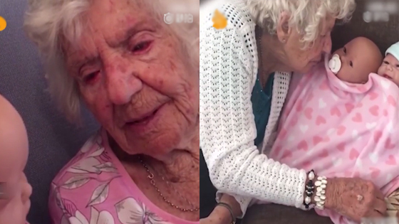 老奶奶照顾洋娃娃 把它当成自己的孙女