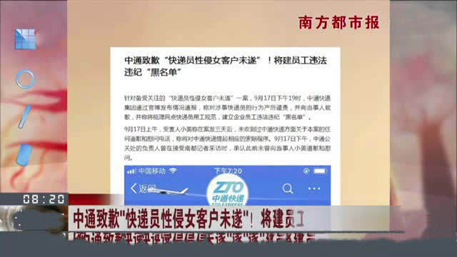 南方都市报:中通致歉“快递员性侵女客户未遂”!将建员工违法违纪“黑名单”