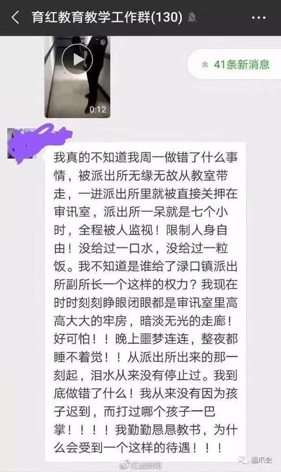 隔天,一篇微信文章《老师罚学生站了几分钟,竟然被抓进派出所关了7小时,谁给了这位副所长如此张狂的权利》,在教师圈里广泛传播。