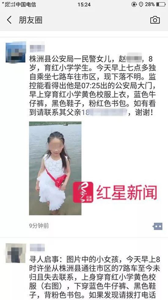 当天,不少株洲人的微信朋友圈都有“民警女儿失联”的信息。小城圈子里迅速传播的消息,帮赵明众夫妇很快寻回了女儿。