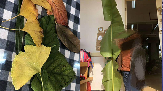 幼儿园老师让收集树叶 东北小孩扛两人高"巨叶"