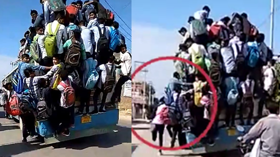 壮观为不误考试时间 印度几十名学生挂公交上赶考