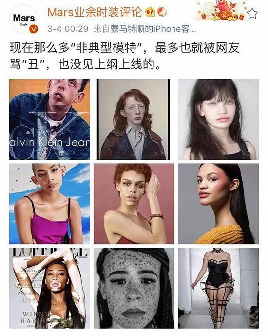 “要说审美无高低贵贱之分我认可,但是审美的包容性却有大小之分,有些人可以接受更多,而有些人就只能接受大眼睛双眼皮高鼻梁尖下巴。”博主iDest表示。其实中国网友有如此激烈的反应其实也容易理解。自去年11月Docle & Gabbana起筷吃饭广告中的模特,到上个月Zara广告中的雀斑女模,“种族歧视”的话题正处在一点就着的风口浪尖上。人们对于出现在海外时尚媒体、品牌广告中的中国模特形象变得更加敏感起来。