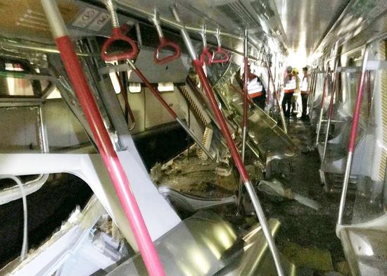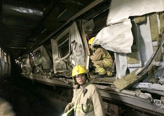 据香港东网消息,凌晨2时55分,港铁中环站荃湾线进行试车期间,两列列车突然发生碰撞,更一度冒烟,消防接报到场时,烟雾已消散。消息称,其中一名港铁车长被困,消防员将被困车长救出;至于另一名车长则脚部受伤。两名伤者接受救护员现场治疗。所幸两人伤势不严重,可在救护员陪同下,步行离开中环站,由救护车送院。