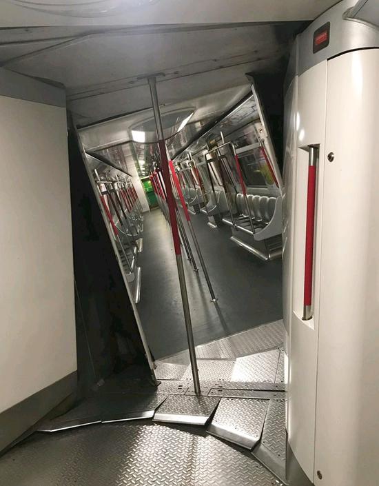 12张现场消息称,事发时两列列车正在行驶,途至两条路轨的交汇时,疑信号失灵,两列车均未及煞掣导致意外。肇事位置为中环至金钟的管道内,其中一列为往中环方向列车,另一列则由中环往金钟。据悉,其中一列列车的头一、二卡有损毁。