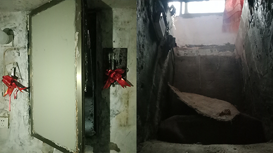 该地洞不到1.8米高,呈正方形状。不足4平方米的地洞内地面上和卧室一样,铺有地毯。地毯上的一角散落着碳酸饮料、饼干、梳子和卫生纸。洞内四壁上贴有代表喜庆的婚庆装饰品。