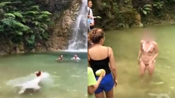 外国游客在南海湾森林生态园游泳 劝了好久才上来