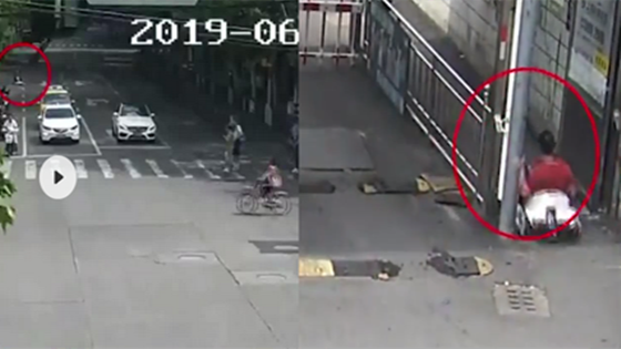 澎湃新闻记者从监控视频中发现,该男子驾驶着迷你的玩具卡丁车在马路上上演连续变道、逆向行驶,行至小区入口卡住,反复倒车后一溜烟驶入小区消失了。