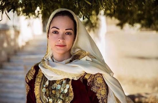 墨伽拉市,希腊。Kalliopi穿着祖传自奶奶的衣服。她平常穿现代装,但复活节的第三天会患上古装,跳一种叫做Trata的古老舞蹈。