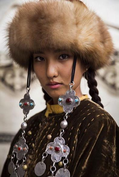 比什凯克,吉尔吉斯斯坦。这个妹子穿着盛装,等待上台表演。