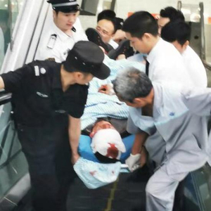 正在附近带队巡逻的沙坪坝区公安分局西客站治安派出所的冯警官接到群众报警后,迅速赶到现场,立即对其头部进行止血、包扎处理,擦拭其脸部血迹,并让现场群众帮忙拨打120急救电话。