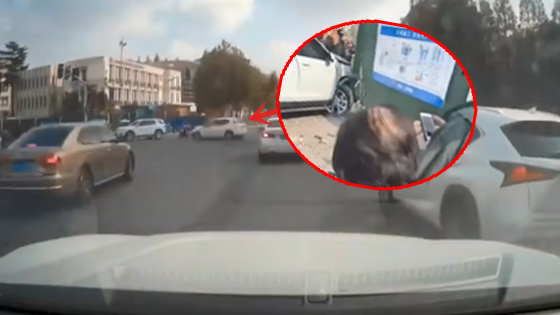 上海一辆轿车撞倒多辆车 现场监控画面曝光