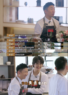 第四期节目的尾声,为咖啡店经营做出很多贡献的杨迪要离店了,小哥哥们依依不舍地表示未来还要常常“骚扰”杨迪,杨迪也用他自己的方式为小哥哥们加油打气。