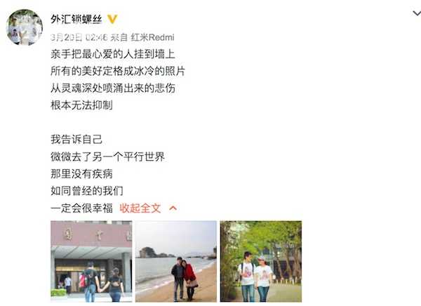 《人间世2》里患癌女博士走了 抵不住思念的丈夫发微博