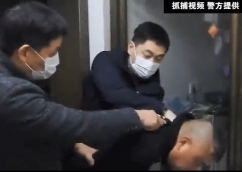 敲开房门之后,麻继钢被冲进来的三名警察反扣住双手。从事后警方公布的视频画面上看